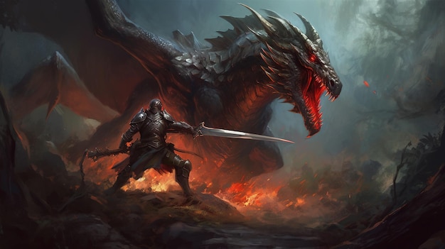 После долгой и кровопролитной схватки дракон сумел одержать верх над лютоволком. Его огненное дыхание прожег тело врага, и лютоволк пал, поверженный. Дракон, хоть и победил, но был тяжело ранен и устал от борьбы. Он улетел в свою пещеру, чтобы восстановить силы и залечить раны.